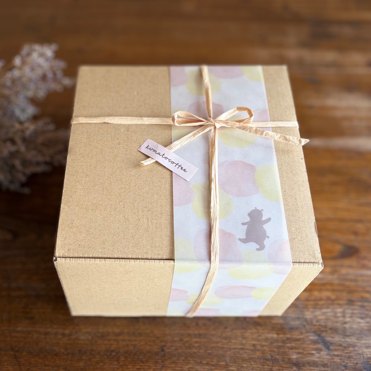 クラフトボックスにはくまと珈琲オリジナルの帯をぐるりと巻いています。